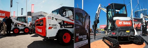 ▲ 本届“ConExpo 2017”上公开的山猫新产品M2系列(左)和山猫迷你挖掘机R 系列(右)。