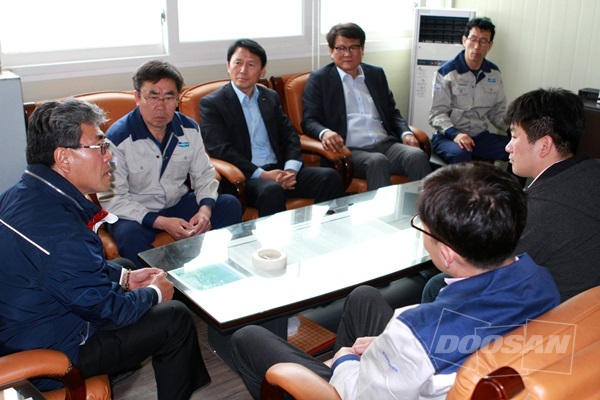 斗制产业的代表董事和东光开发的代表与斗山工程机械劳资进行交流时表示:“我们需要能够反应现场特点的零件。一定要铭记客户的眼光常常高于供货商这一事实。”同时还嘱咐道:“希望斗山的员工能够认真对待每一个细枝末节,从而打造出真正的名牌优质产品。”
