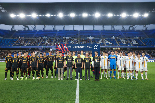 In celebration of Brand Day, CEO Cho Young-cheul of HD Hyundai XiteSolution, the parent company, and CEO Choi Cheol-gon of HD Hyundai Construction Equipment made a ceremonial kickoff together. Players of Ulsan HD FC took to the field while wearing black tiger-striped uniforms released in commemoration of “HD Hyundai Construction Equipment Brand Day.”
