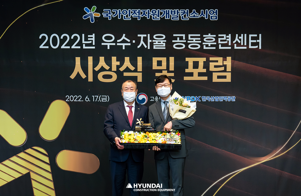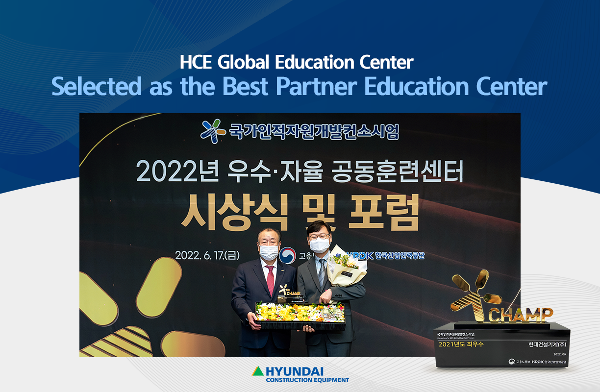 Hyundai Construction Equipment’s Global Education Center received the honor of being selected as the Best Partner Education Center (A-Grade) at the awarding ceremony for excellent partner education centers held by the National Consortium for Human Resource Development.