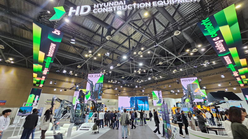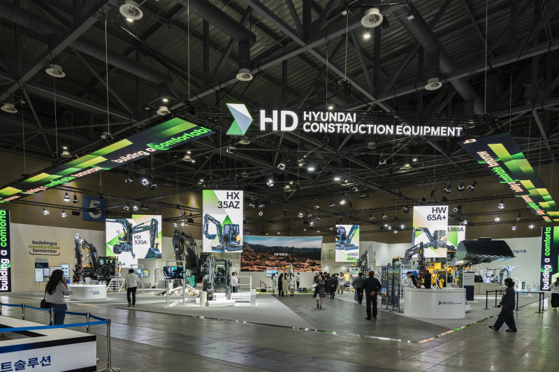 ‘생산성’ 테마에서 HD현대건설기계는 후방 돌출부가 없어 도심지에서 기동성이 뛰어난 미니 굴착기(HX17AZ)를 비롯해, 에어 서스펜션과 냉·온풍 시트가 적용돼 쾌적한 운전환경을 제공하는 6톤급 소형 휠굴착기(HW65A+), 고강도 설계구조로 거친 환경에서도 문제없는 초대형 휠로더(HL985A) 등 국내 산업현장에 특화된 최신 장비들을 출품했다.