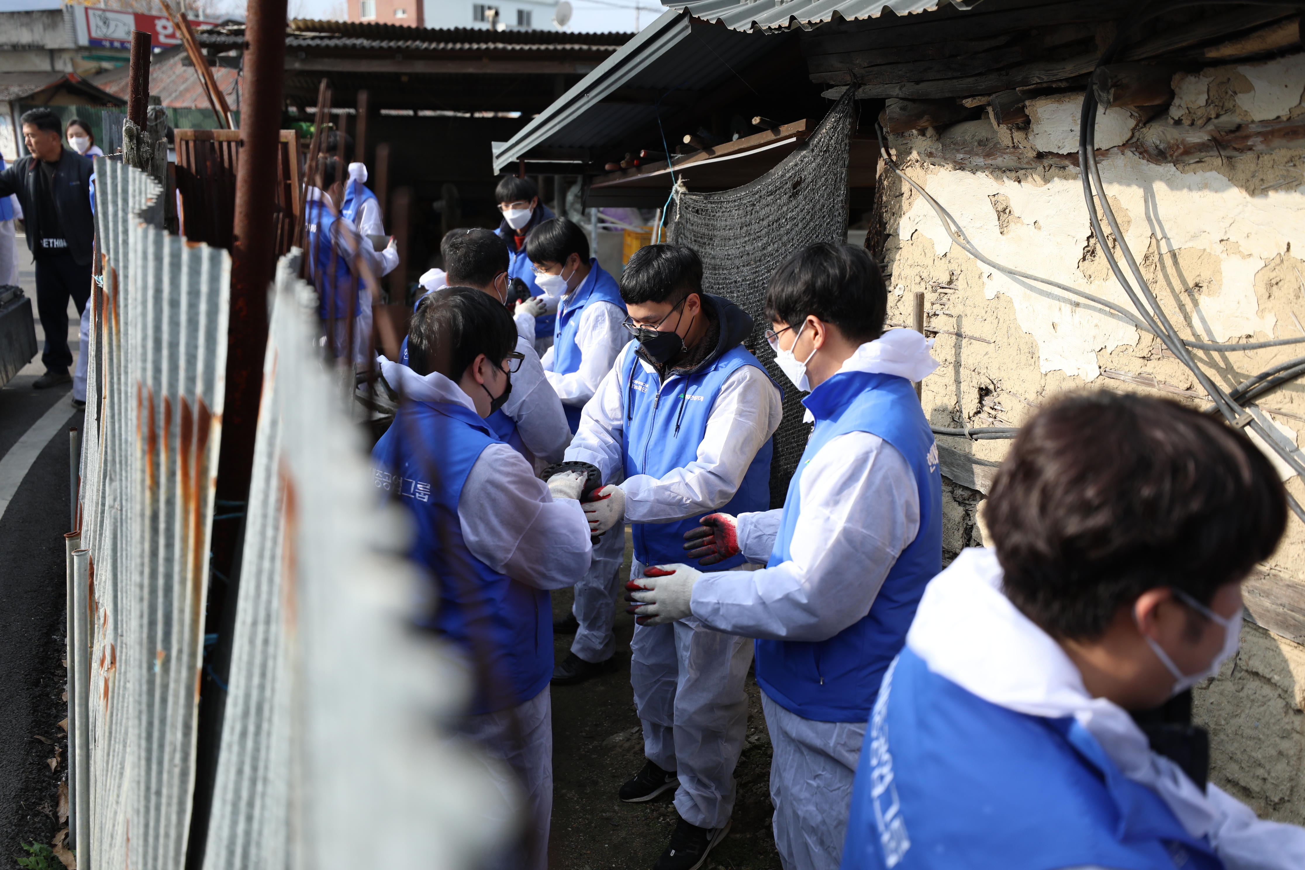 현대건설기계에 신규 입사한 30여명의 직원들이 지난 18일 충북 음성군 소이면 지역 독거노인분들이 거주하는 25가구를 직접 찾아, 가구당 250장씩 총 6250장을 전달했다.