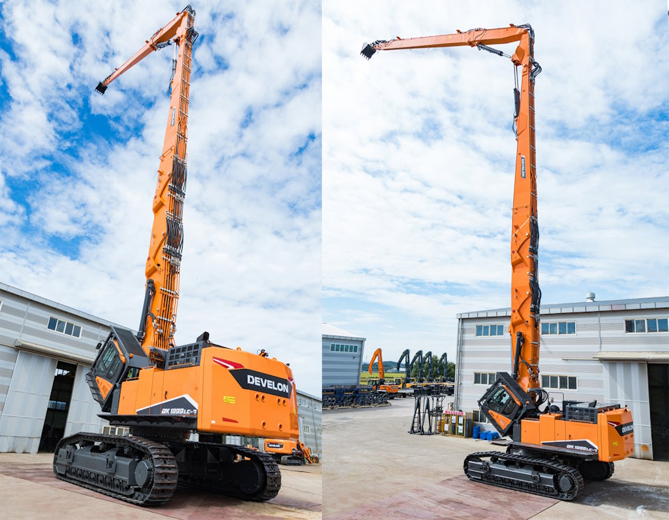 이 장비는 고층 철거 시 40도까지 운전석을 위로 기울일 수 있어 안전한 시야 확보가 가능하고, 고중량 무게추(카운터웨이트)를 추가 장착해 작업 안정성을 높였다. 또한 모니터용 카메라, 안전 경보장치, 분진감소용 워터스프레이, 크롤러(벨트형 차 바퀴)폭 자동확장기능 등을 적용해 편의기능도 개선됐다.